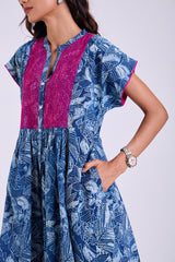 Chaaya Indigo Block Printed Dress With Cap Sleeves